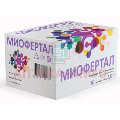 - МИОФЕРТАЛ - Биологически активная добавка (БАД) к пище - действие продукта Миофертал обусловлено свойствами входящих в него компонентов мио-инозитола и фолиевой кислоты.
