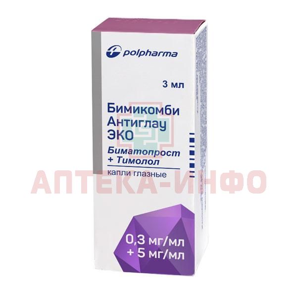 Бимикомби Антиглау ЭКО фл.(капли глазн.) 0,3мг/мл+5мг/мл 3мл Polfa/Польша