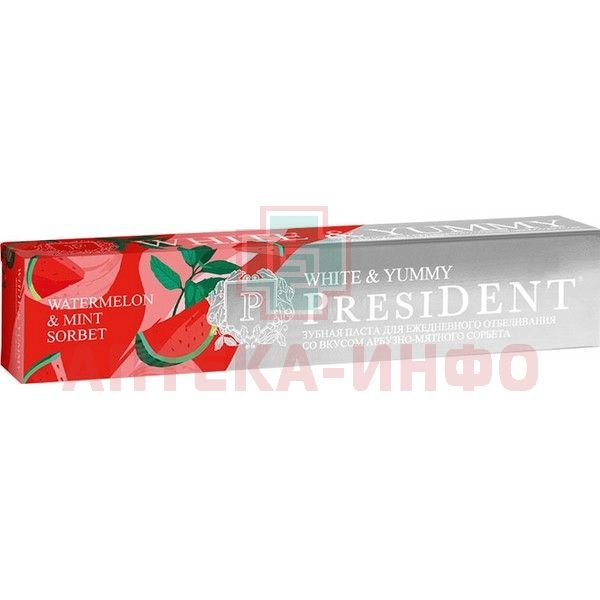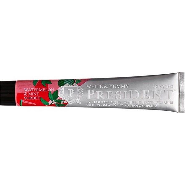 - ПРЕЗИДЕНТ WHITE & YUMMY ЗУБНАЯ ПАСТА АРБУЗНО-МЯТНЫЙ СОРБЕТ - для ежедневного отбеливания