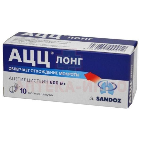 АЦЦ лонг таб. шип. 600мг №10 Hermes Arzneimittel/Германия/Salutas Pharma/Германия