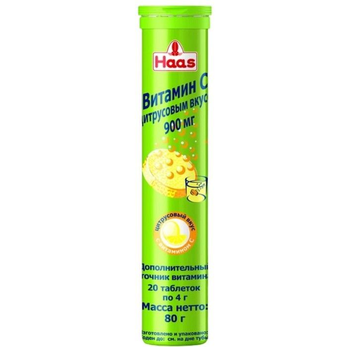 HAAS ШИПУЧИЕ ТАБЛЕТКИ ВИТАМИН С 900МГ С ЦИТРУСОВЫМ ВКУСОМ - Биологически активная добавка (БАД) к пище - дополнительный источник витамина С, E, B1, B2, B6, ниацина, пантотеновой кислоты, фолиевой кислоты, биотина, кальция.