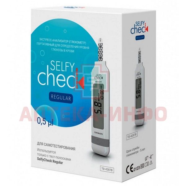 - Медицинское изделие «Система для определения уровня глюкозы в крови (глюкометр) портативная SelfyCheck Regular» предназначено для количественного определения уровня глюкозы как вспомогательное средство при мониторинге уровня глюкозы в свежей цельной капиллярной крови, взятой из пальца, ладони, плеча и предплечья для самодиагностики у людей, больных диабетом в домашних условиях и при нахождении в медицинской организации, а также для использования работниками здравоохранения в медицинских учреждениях .