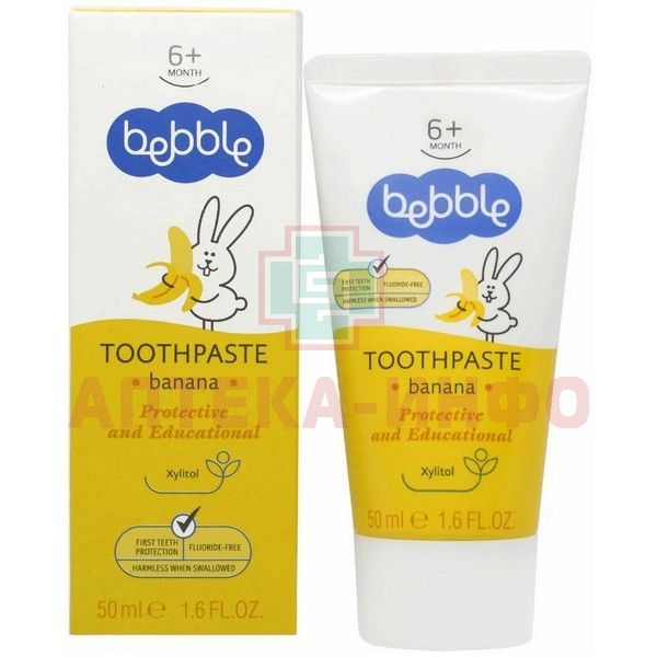 - BEBBLE ЗУБНАЯ ПАСТА ДЕТСКАЯ С АРОМАТОМ БАНАНА - деликатно очищает и защищает от кариеса первые зубки вашего ребенка.