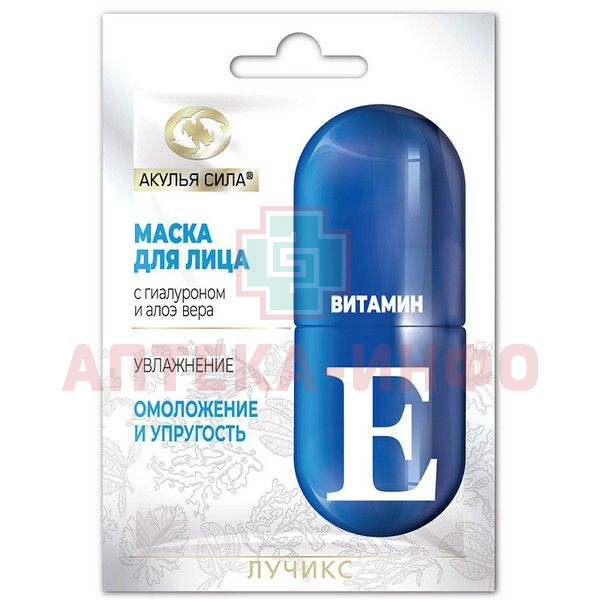 - АКУЛЬЯ СИЛА МАСКА ДЛЯ ЛИЦА ВИТАМИН Е - витамин Е, гиалуроновая кислота, алоэ вера - увлажнение, омоложение и упругость