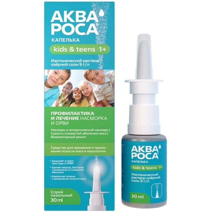 - Спрей назальный АКВАРОСА КАПЕЛЬКА kids&teens на основе уникальной соли озер Алтая поддерживает и восстанавливает физиологическое состояние слизистой оболочки: