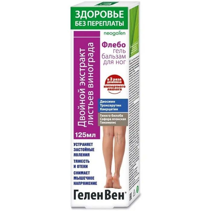 Гель-бальзам Здоровье без переплаты ГеленВен Флебогель двойной экстракт листьев винограда д/ног 125мл КоролевФарм/Россия