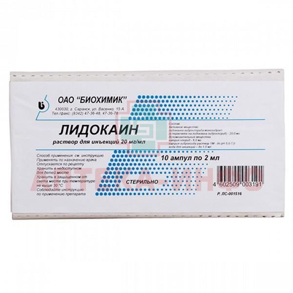 Лидокаин амп.(р-р д/ин.) 20мг/мл 2мл №10 Биохимик