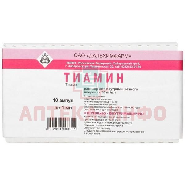 Тиамин амп.(р-р д/в/м введ.) 50мг/мл 1мл №10 Дальхимфарм