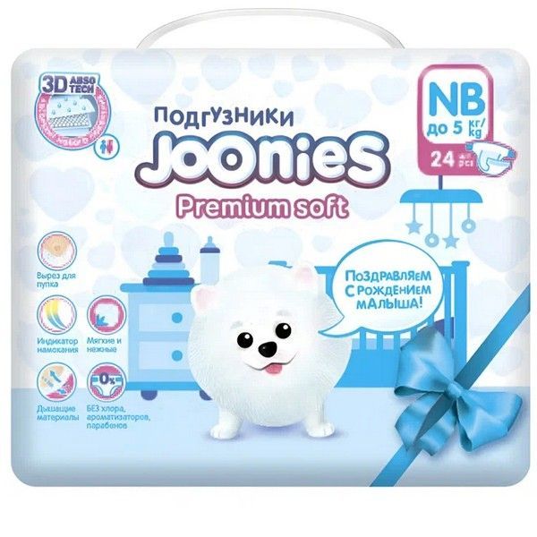 Подгузники Joonies Premium soft NB (до 5кг) №24 Quanzhou Junjoong Sanitary Product/Китай