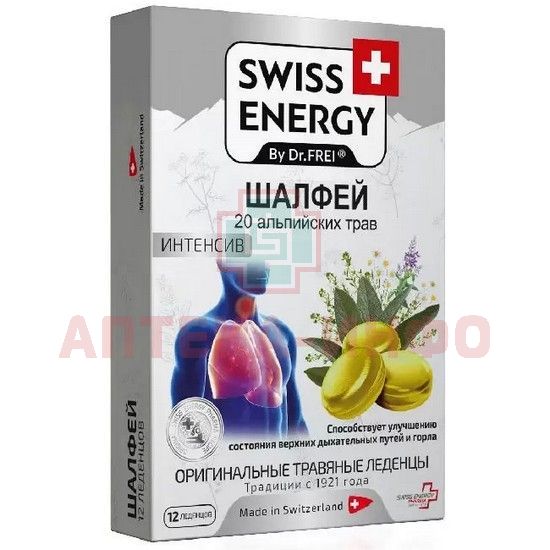 Свисс Энерджи леденцы 20 альпийских трав+шалфей №12 Domaco Dr.med.Aufdermaur/Швейцария