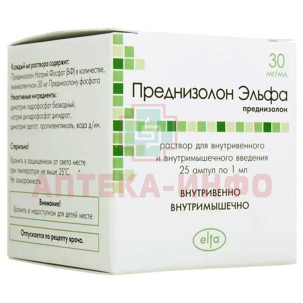 Преднизолон Эльфа амп.(р-р д/в/в и в/м введ.) 30мг/мл 1мл №25 Indus Pharma/Индия