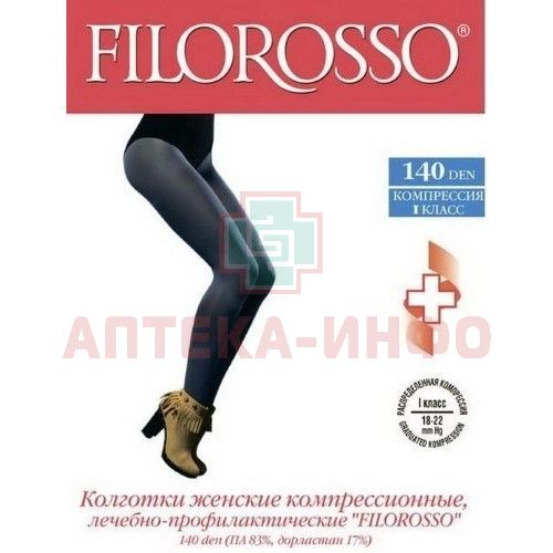 - FILOROSSO КОЛГОТКИ КОМПРЕССИОННЫЕ ЛЕЧЕБНО-ПРОФИЛАКТИЧЕСКИЕ 140 den (Profilactica) - рекомендованы для лечения начальных проявлений хронической венозной недостаточности, для снятия отеков, улучшения кровообращения.