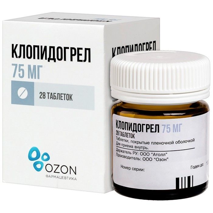 Клопидогрел таб. п/пл. об. 75мг №28 (банки) Озон/Россия