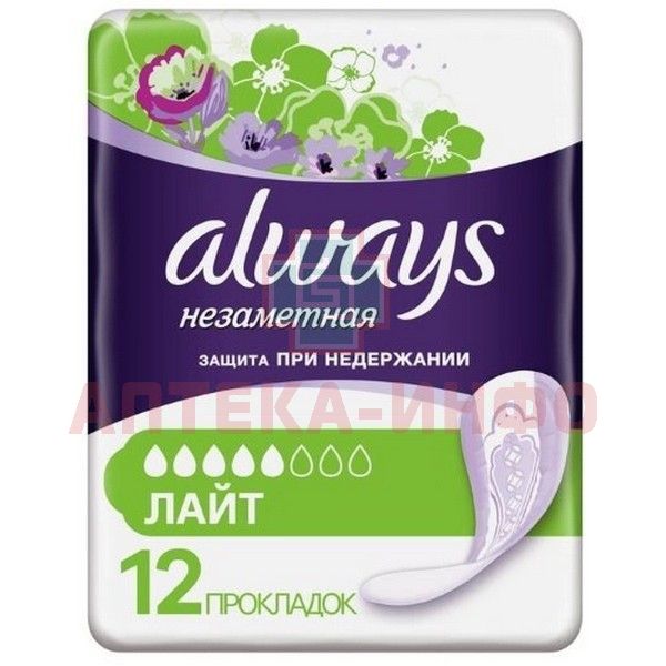 - ALWAYS НЕЗАМЕТНАЯ ПРОКЛАДКИ ЛАЙТ- для тех моментов, когда вам необходима дополнительная защита, есть прокладки Always «Незаметная защита при недержании».