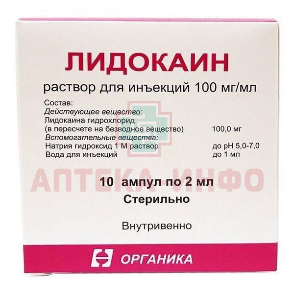 Лидокаин амп.(р-р д/ин.) 100мг/мл 2мл №10 Органика