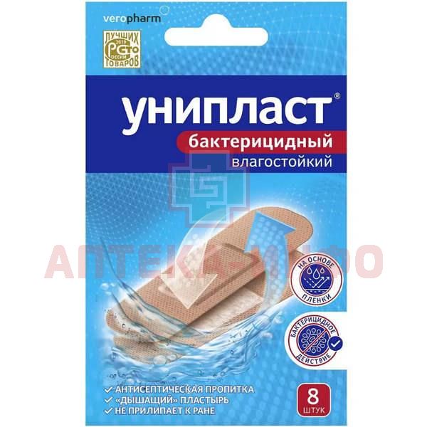 Лейкопластырь бактерицидный УНИПЛАСТ влагостойк. 1,9 x 7,2см №8 Верофарм ОАО