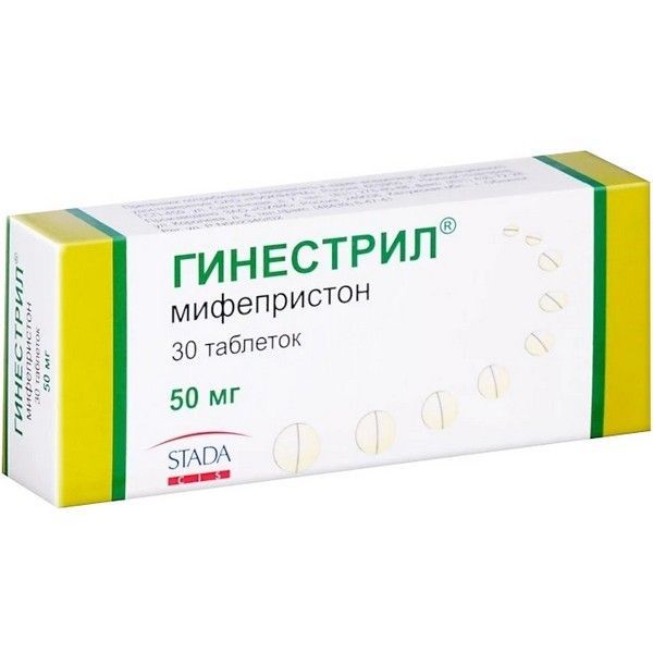 Одна таблетка содержит: активное вещество: мифепристон - 0,05 г, вспомогательные вещества: целлюлоза микрокристаллическая - 0,0661 г, карбоксиметилкрахмал натрия - 0,0135 г, тальк - 0,00405 г, кальция стеарат - 0,00135 г.