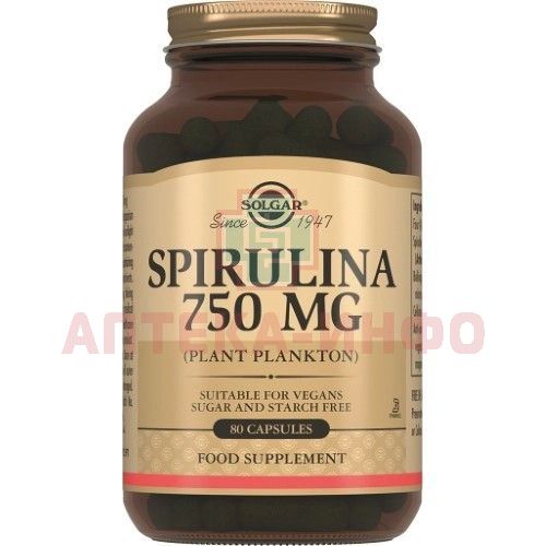Солгар Спирулина капс. 750мг №80 Solgar Vitamin and Herb/США