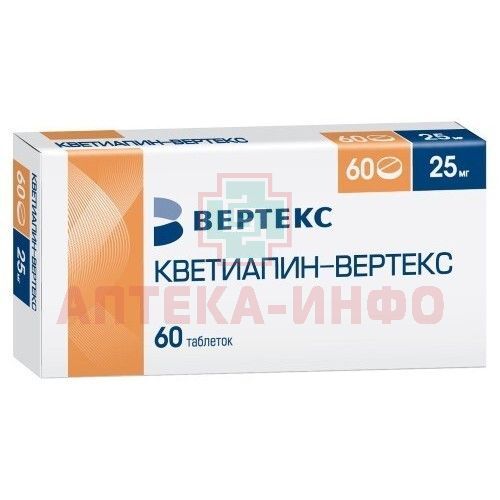 Кветиапин-Вертекс таб. п/пл. об. 25мг №60 (30х2) Вертекс