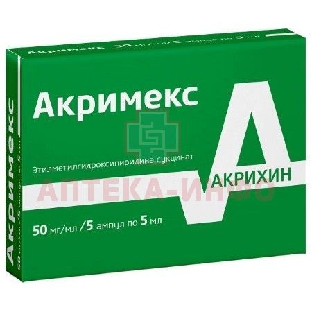 - При абстинентном алкогольном синдроме Акримекс вводят в дозе 200-500 мг внутри-венно капельно или внутримышечно 2-3 раза в сутки в течение 5-7 дней.