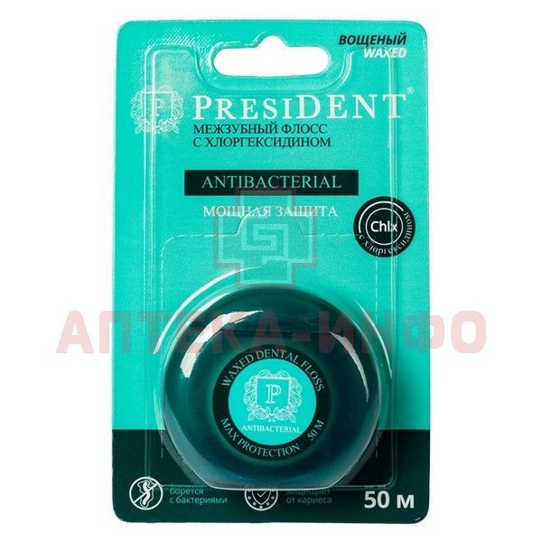 Зубная нить ПРЕЗИДЕНТ флосс антибактер. с хлоргексидином 50м (арт. 201) Hebei Fenghe Biotechnology/Китай