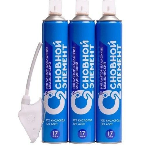 - Кислородный ингалятор-баллончик медицинский с маской - 17 л - набор из 3-х баллончиков+мягкая маска 1 шт.
