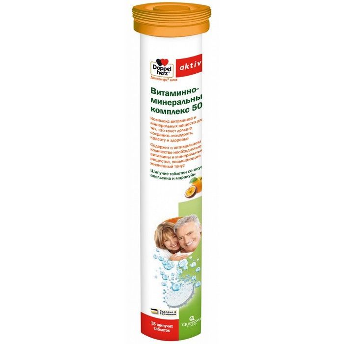 - Доппельгерц® актив Витаминно-минеральный комплекс 50+ шипучие таблетки со вкусом апельсина и маракуйи - комплекс витаминов и минеральных веществ для тех, кто хочет дольше сохранить молодость, красоту и здоровье.