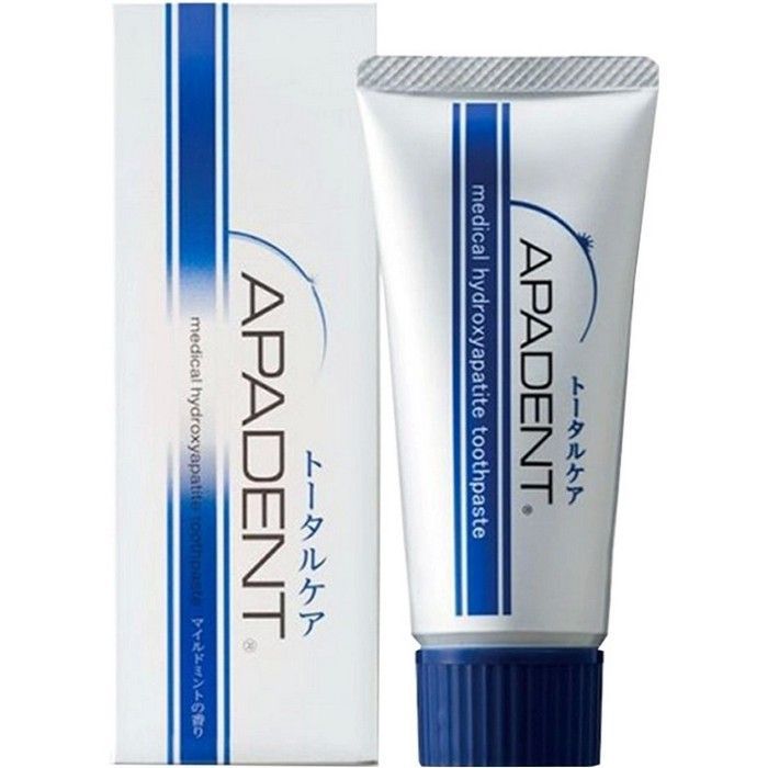 - ЗУБНАЯ ПАСТА APADENT TOTAL CARE - это первая в мире зубная паста с гидроксиапатитом, выпускается с 1980 года. Подходит для ежедневного применения.
