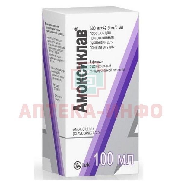 Амоксиклав фл.(пор. д/приг. сусп. д/приема внутрь) 600мг+42,9мг/5мл 33,1г №1 с доз.пипеткой Lek/Словения