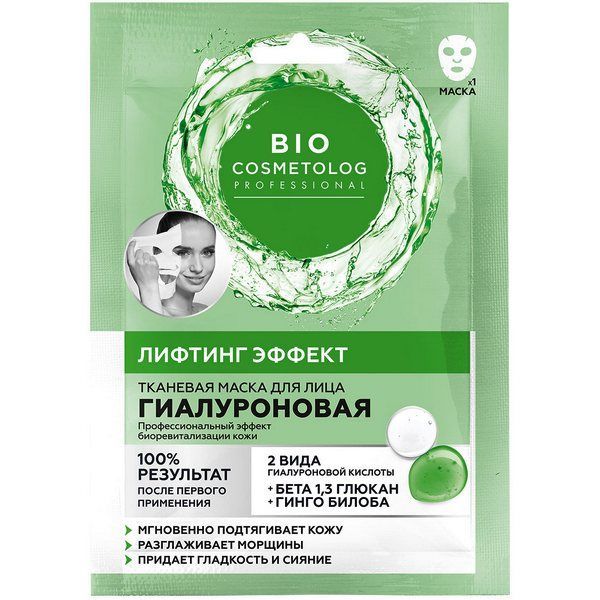 Гиалуроновая тканевая маска Лифтинг эффект преображает кожу, дарит красоту, молодость и здоровое сияние уже после первого применения! Ее профессиональная формула мгновенно подтягивает кожу, укрепляет овал лица, устраняет морщины и обеспечивает профессиональный эффект биоревитализации. Два вида гиалуроновой кислоты глубоко увлажняют и омолаживают кожу на клеточном уровне. БЕТА 1,3 глюкан повышает иммунитет кожи, разглаживает морщины, устраняет все признаки старения. Гинго билоба обладает мощным тонизирующим эффектом, делает кожу гладкой и упругой. Регулярное применение маски полностью заменяет дорогостоящие и болезненные салонные процедуры!