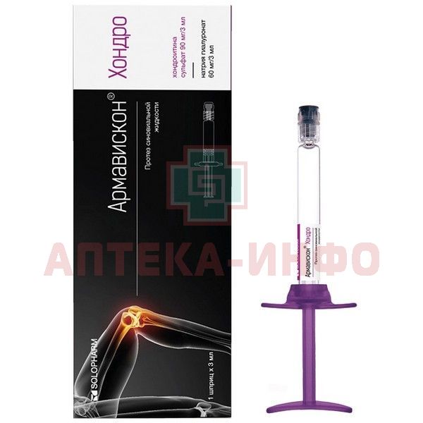 - Армавискон® Хондро является протезом синовиальной жидкости сустава в преднаполненных шприцах. Применяется на фоне дегенеративных изменений поверхности синовиального хряща для улучшения подвижности суставов, уменьшения болевого синдрома, снижения воспалительных реакций и восстановления гомеостаза в хряще.
