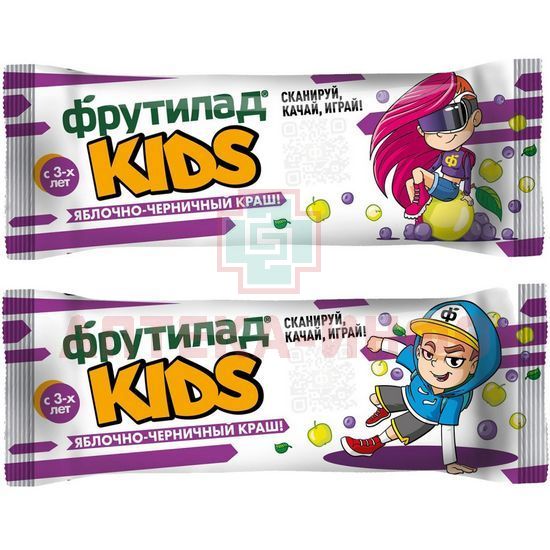 Натуральный фруктовый батончик Фрутилад Kids «Яблочно-черничный краш!» из натурального яблочного пюре, с ягодами черники, сушеными абрикосами и яблоками.