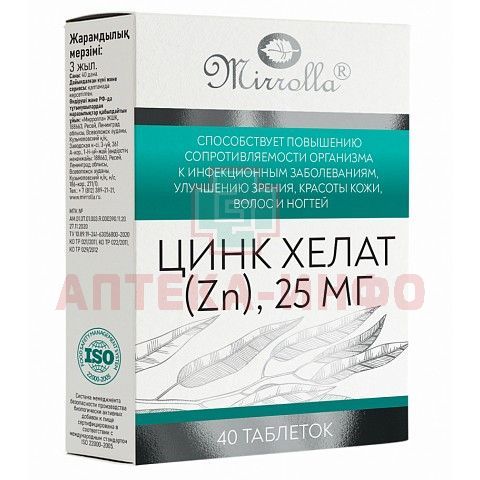 - МИРРОЛЛА ЦИНК ХЕЛАТ (ZN) 25МГ - Биологически активная добавка (БАД) к пище