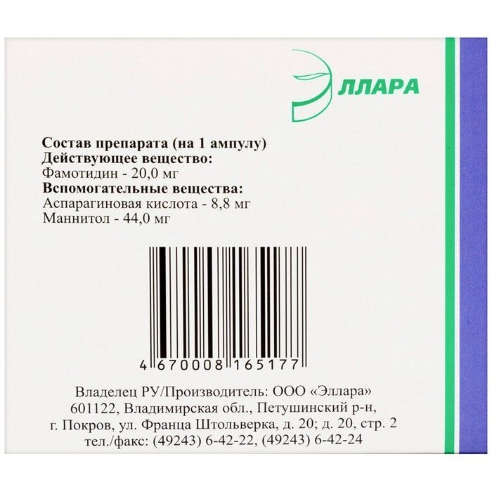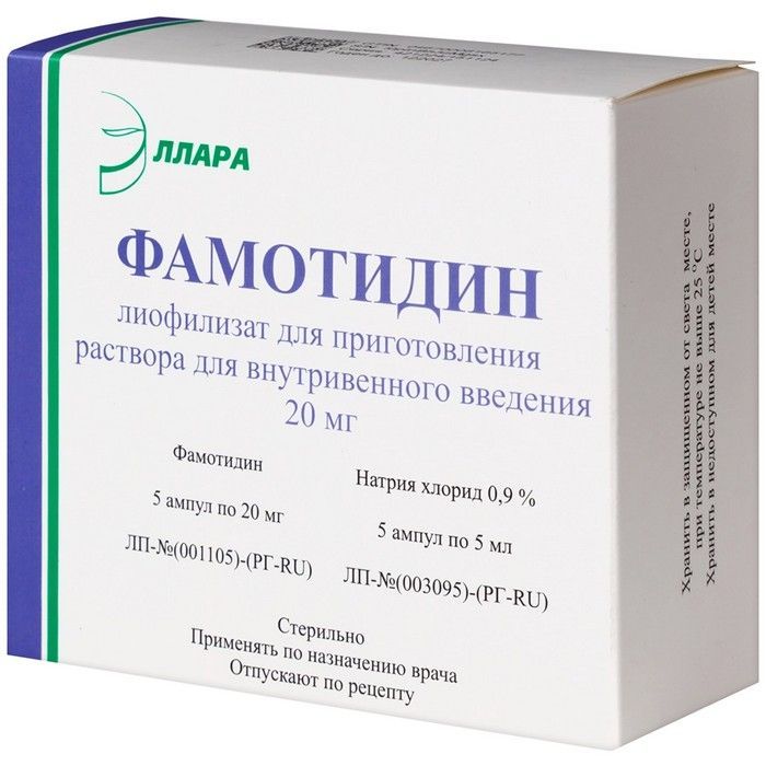 Фамотидин амп.(лиоф. д/приг. р-ра д/в/в введ.) 20мг №5+р-ль Эллара