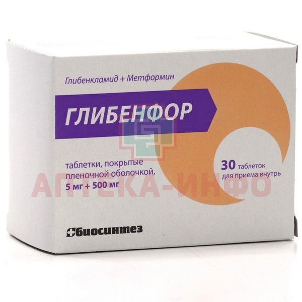 Глибенфор таб. п/пл. об. 5мг+500мг №30 Биосинтез