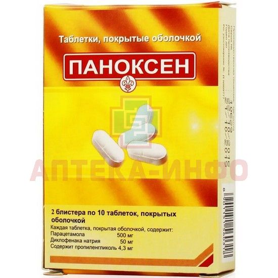 - Паноксен принимают внутрь, не разжевывая, во время или после еды, запивая небольшим количеством воды. По 1 таблетке 2-3 раза в сутки. Максимальная суточная доза - 3 таблетки (150 мг в пересчете на диклофенак).