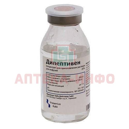 Дипептивен является концентрированным раствором, не предназначенным для прямого введения. Перед вливанием его необходимо смешать с совместимым раствором- носителем (0,9 % раствором натрия хлорида, 5 % или 10 % раствором декстрозы, или содержащим аминокислоты 10 % инфузионным раствором). Одну объемную часть Дипептивена необходимо смешать примерно с пятью объемными частями раствора-носителя (например, 100 мл Дипептивена смешать с 500 мл 10 % раствора аминокислот).