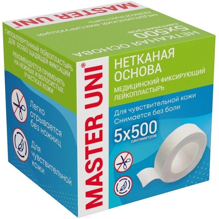 - ЛЕЙКОПЛАСТЫРЬ MASTER UNI МЕДИЦИНСКИЙ ФИКСИРУЮЩИЙ НА НЕТКАНОЙ ОСНОВЕ - современный гипоаллергенный пластырь,обладающий высокой воздухопроницаемостью.