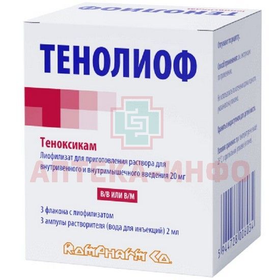 Тенолиоф фл.(лиоф. д/приг. р-ра д/в/в и в/м введ.) 20мг №3 + р-ль Rompharm Company/Румыния