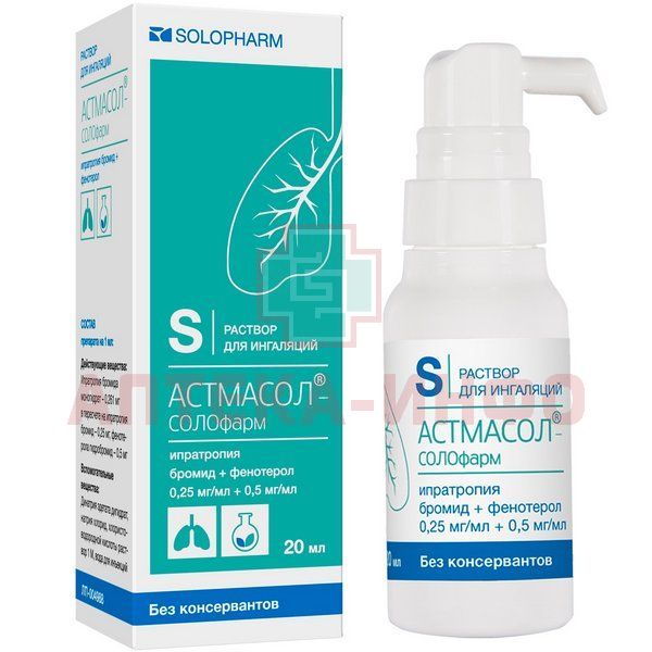 Астмасол бронхо фл.(р-р д/ингал.) 0,25мг/мл+0,5мг/мл 20мл Гротекс/Россия
