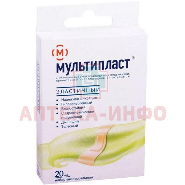 Лейкопластырь бактерицидный МУЛЬТИПЛАСТ набор №20 (эластичный) телес. Новосибхимфарм