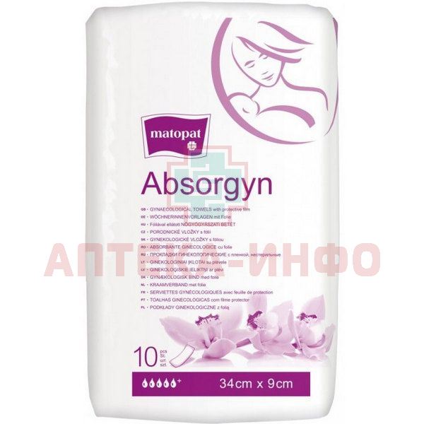 Прокладки гигиенические MATOPAT ABSORGYN д/рожениц н/стер. с пленкой 34х9см №10 TZMO S.A./Польша