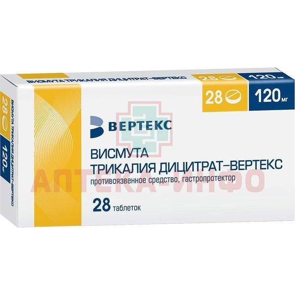Висмута трикалия дицитрат-ВЕРТЕКС таб. п/пл.об. 120мг №28 (14х2) Вертекс