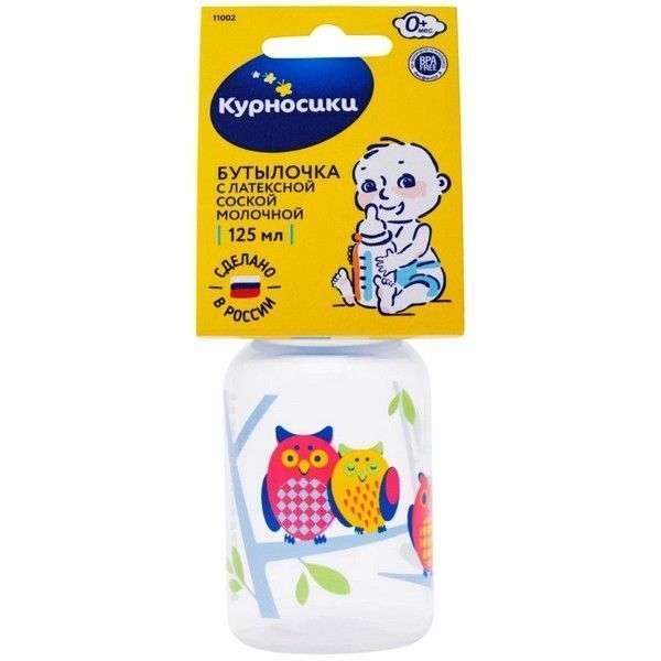 - Бутылочка с латексной соской молочной, 125 мл - 1 шт в уп.