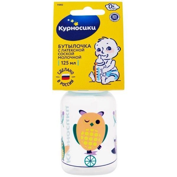 Бутылочка детская КУРНОСИКИ 11002 полипр. с латекс. соской 125мл Клауд