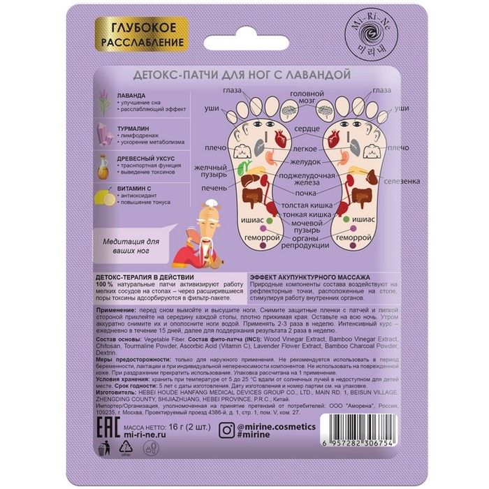 Маска косметическая MI-RI-NE Патчи детокс д/ног с лавандой 16г №2 Hebei Houde Hanfang Medical Devices Group Co Ltd/Китай