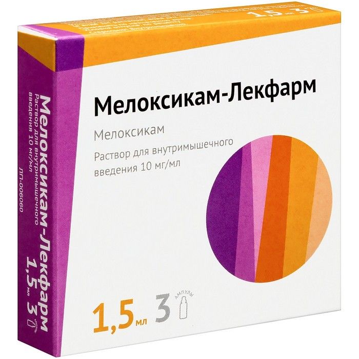 Мелоксикам-Лекфарм амп.(р-р д/в/м введ.) 10мг/мл 1,5мл №3 Лекфарм/Беларусь