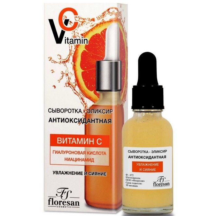 Сыворотка-эликсир Vitamin C (витамин С, гиалуроновая кислота, ниацинамид) антиоксидантная 30мл (Ф-672) Флоресан/Россия