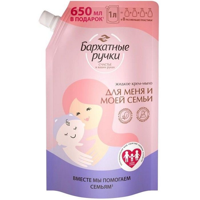 Крем-мыло БАРХАТНЫЕ РУЧКИ для меня и моей семьи крем 1000мл Юнилевер Русь/Россия