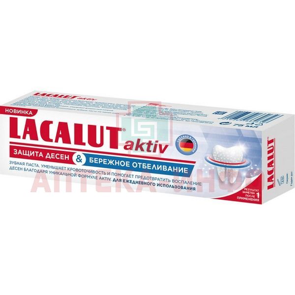 - Зубную пасту LACALUT aktiv ЗАЩИТА ДЕСЕН И БЕРЕЖНОЕ ОТБЕЛИВАНИЕ рекомендуется использовать не менее двух раз в день (утром и вечером).